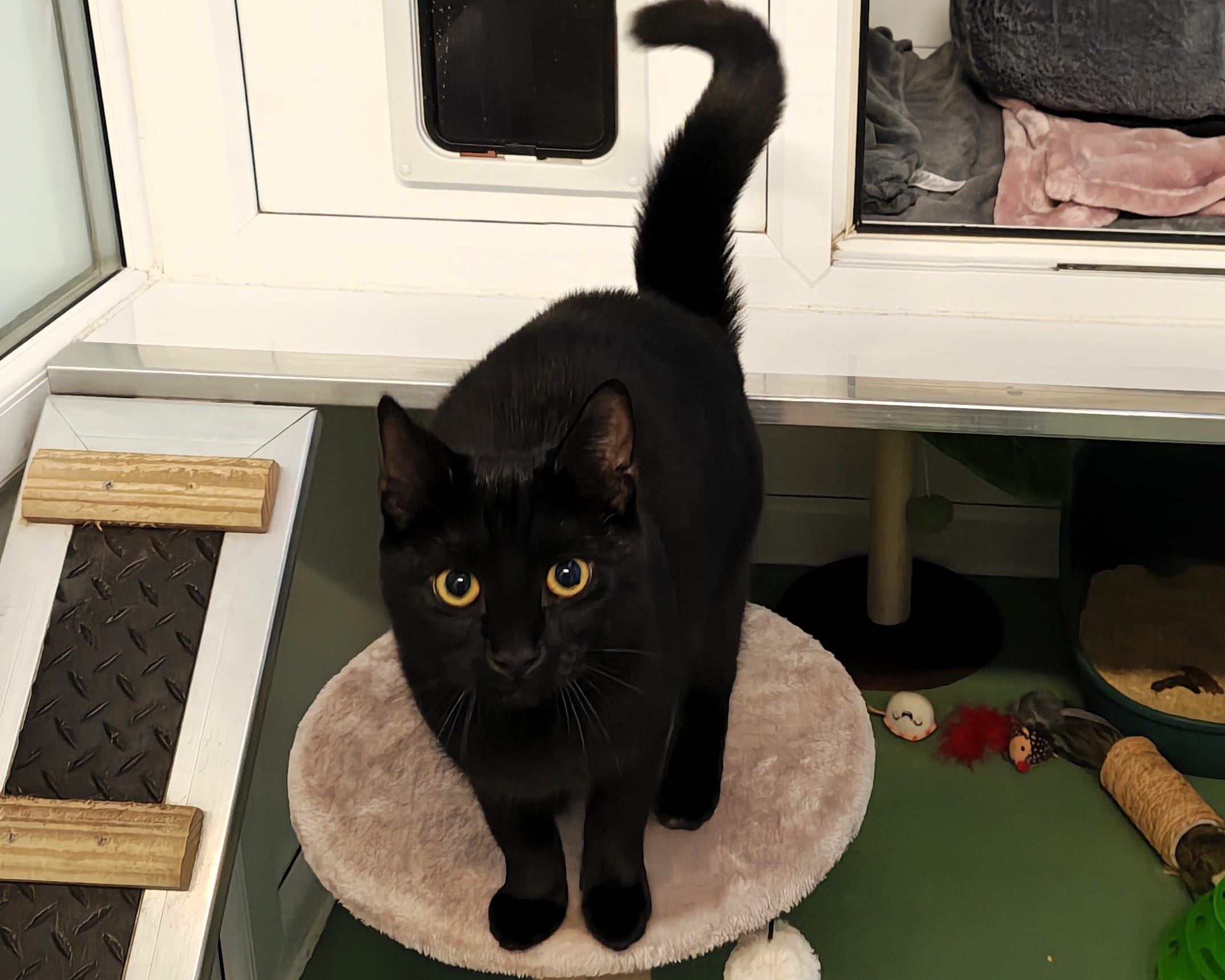 Bella is looking for a new home, we feel that she would be happy living with another cat, she may well be ok with a cat friendly dog. Bella would be ok to live with children 10yrs+. She loves cuddles and lots of fuss and would be happier if there was someone around a lot of the time. Bella loves cuddles and sitting on your lap. She also loves to play with toys with you. Bella is used to using a cat flap and will need outdoor access once settled in a new home.