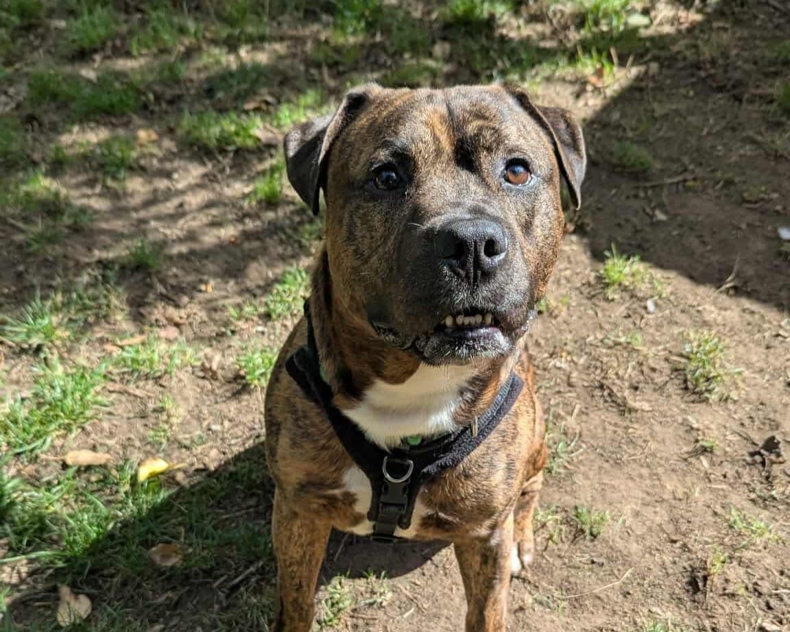 Meet Dexter – a bull breed boy bursting with personality, licks, and the most handsome face… and he knows it! This sweet, cheeky lad loves rolling over for a belly rub and hosting one-dog talent shows, proudly parading his toys up and down while you tell him what a good boy he is!