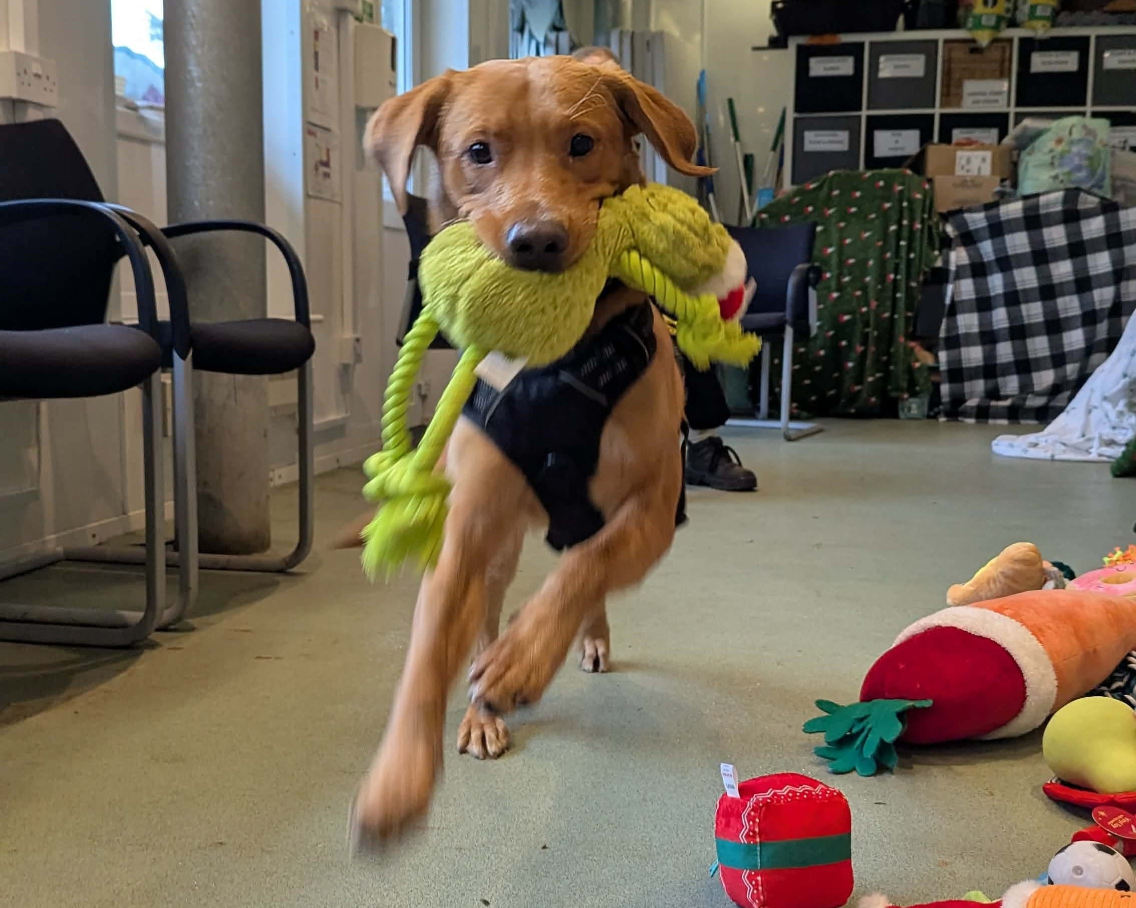 Kobi loves his walks, toys, and anything that lets him burn off energy – spinning and jumping included! A secure garden is a must so he can let off steam, and he’s been enjoying enrichment items like Kongs to help him slow down… just a little.