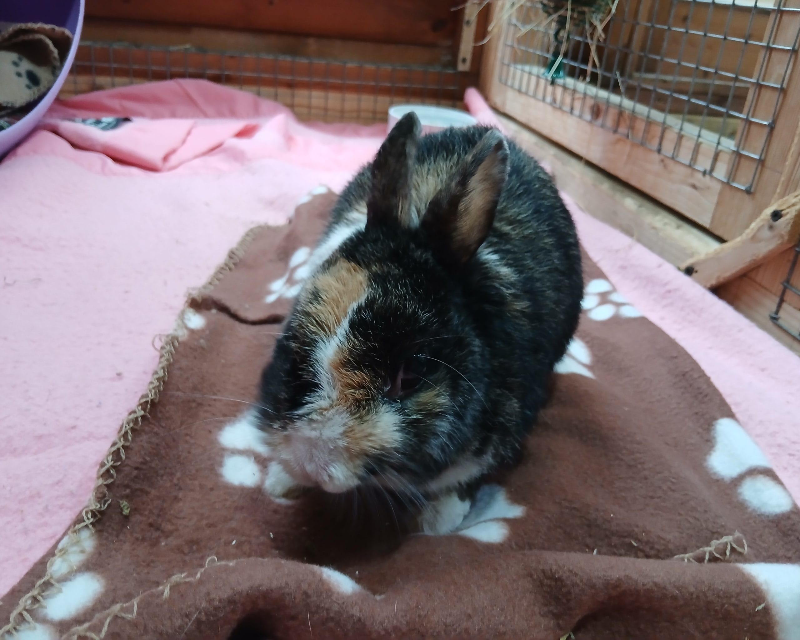 She would be best suited to an indoor home, little is known about her history but we feel she would like to be the only pet in the home along with her bonded rabbit buddy. She has a respiratory condition called pasteurella and must be bonded to another rabbit with the same condition.